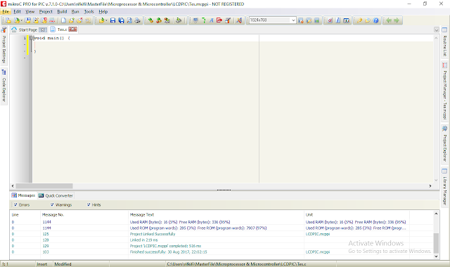 Pemograman PIC ini diprogram menggunakan bahasa C dan dapat menggunakan kompiler MikroC for PIC yang dapat didownload di situs resminya.